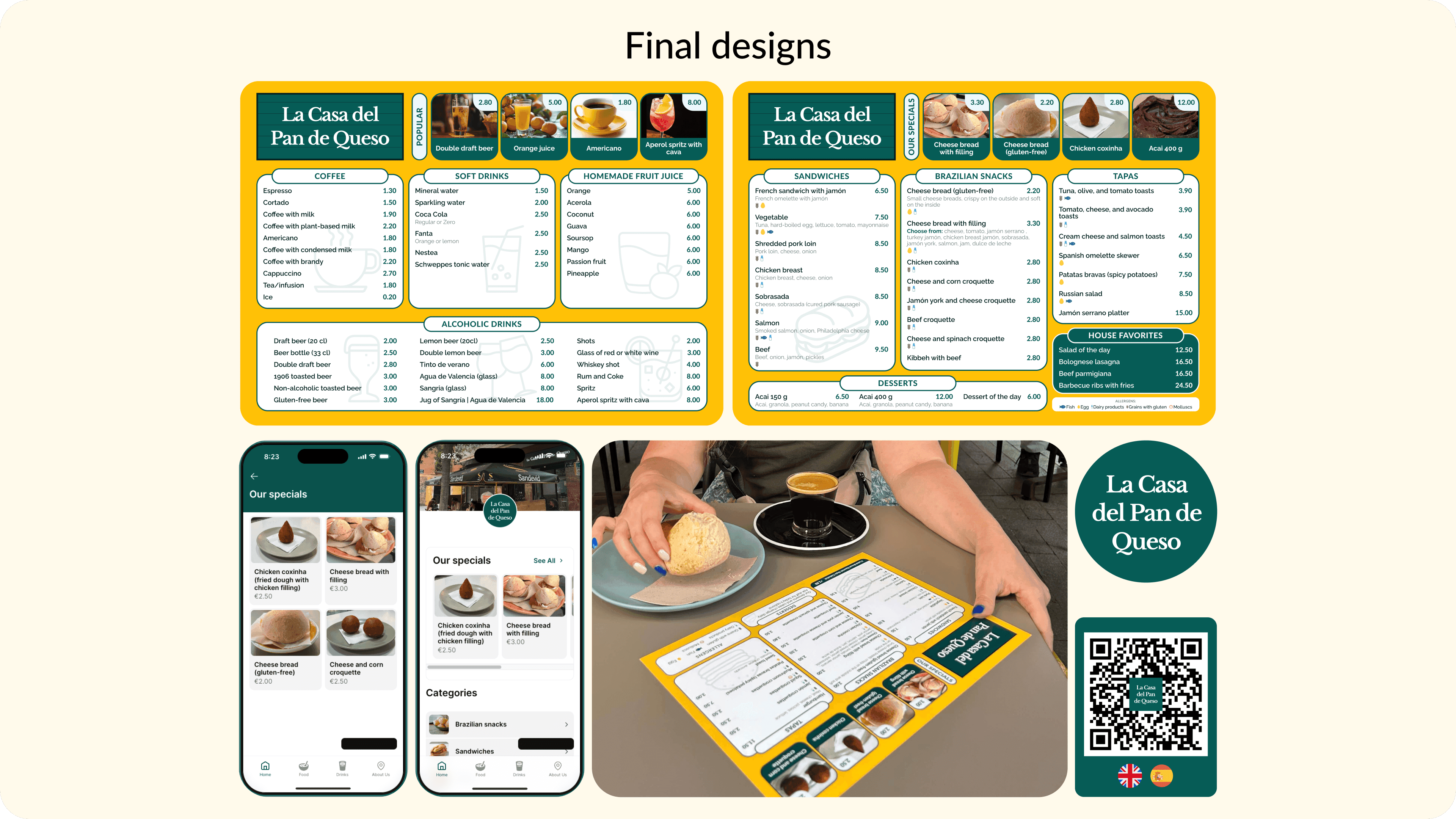 Bilingual print and QR-based digital menu designed for a high-traffic café under tight time and budget constraints