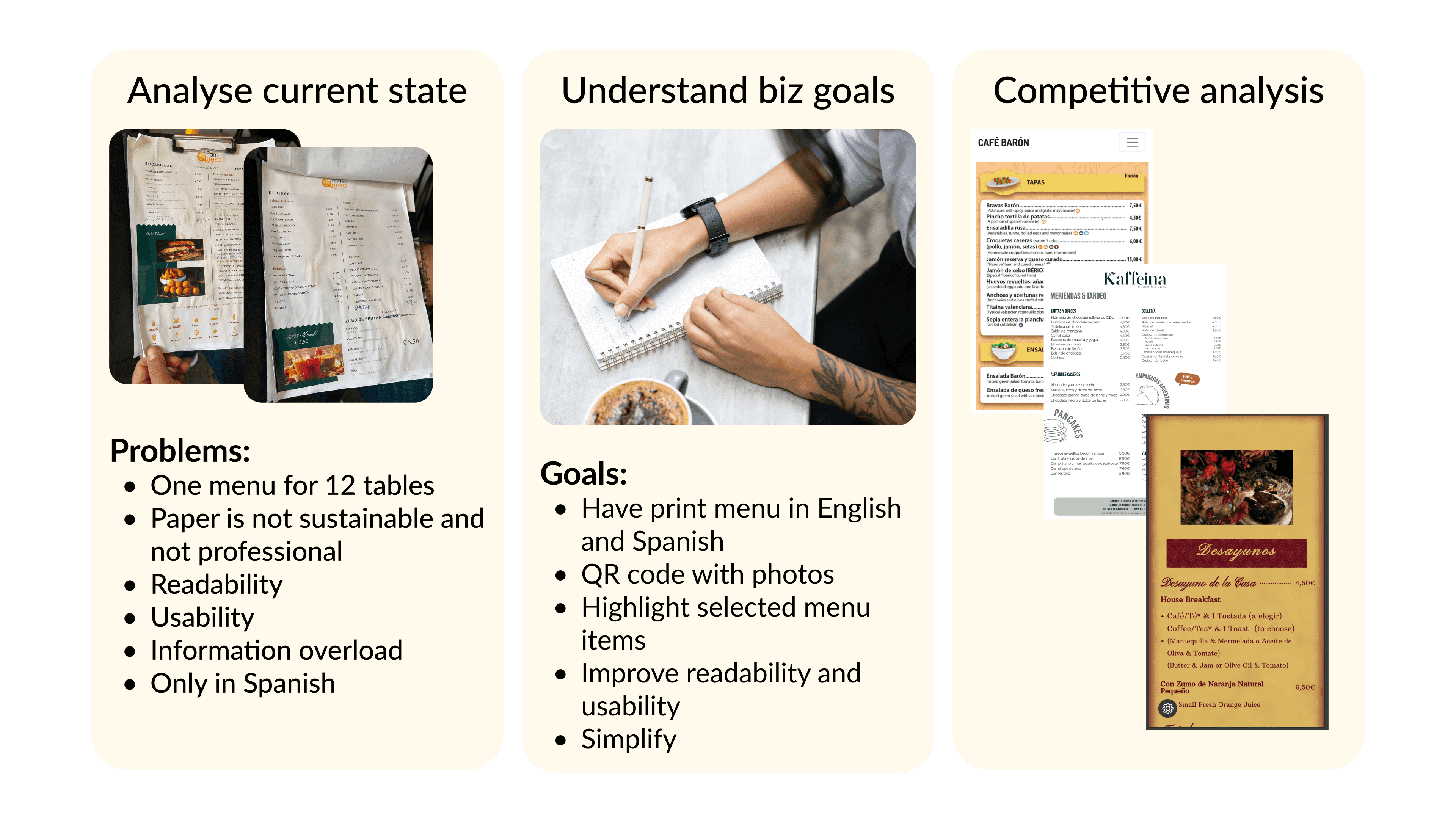 There was no budget for user research or professional photography, and only a few dishes had images.